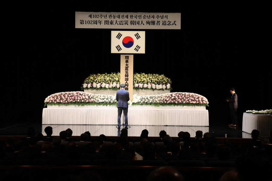 1.김장현 대사대리는 2025.9.1(월) 11시 주일한국문화원 2층 한마당홀에서 민단동경본부 주최로 개최된 '제102주년 관동대지진 한국인 순난자 추념식'에 참석하여 헌화하고 추념사를 낭독하여 희생자들을 추도하였습니다.