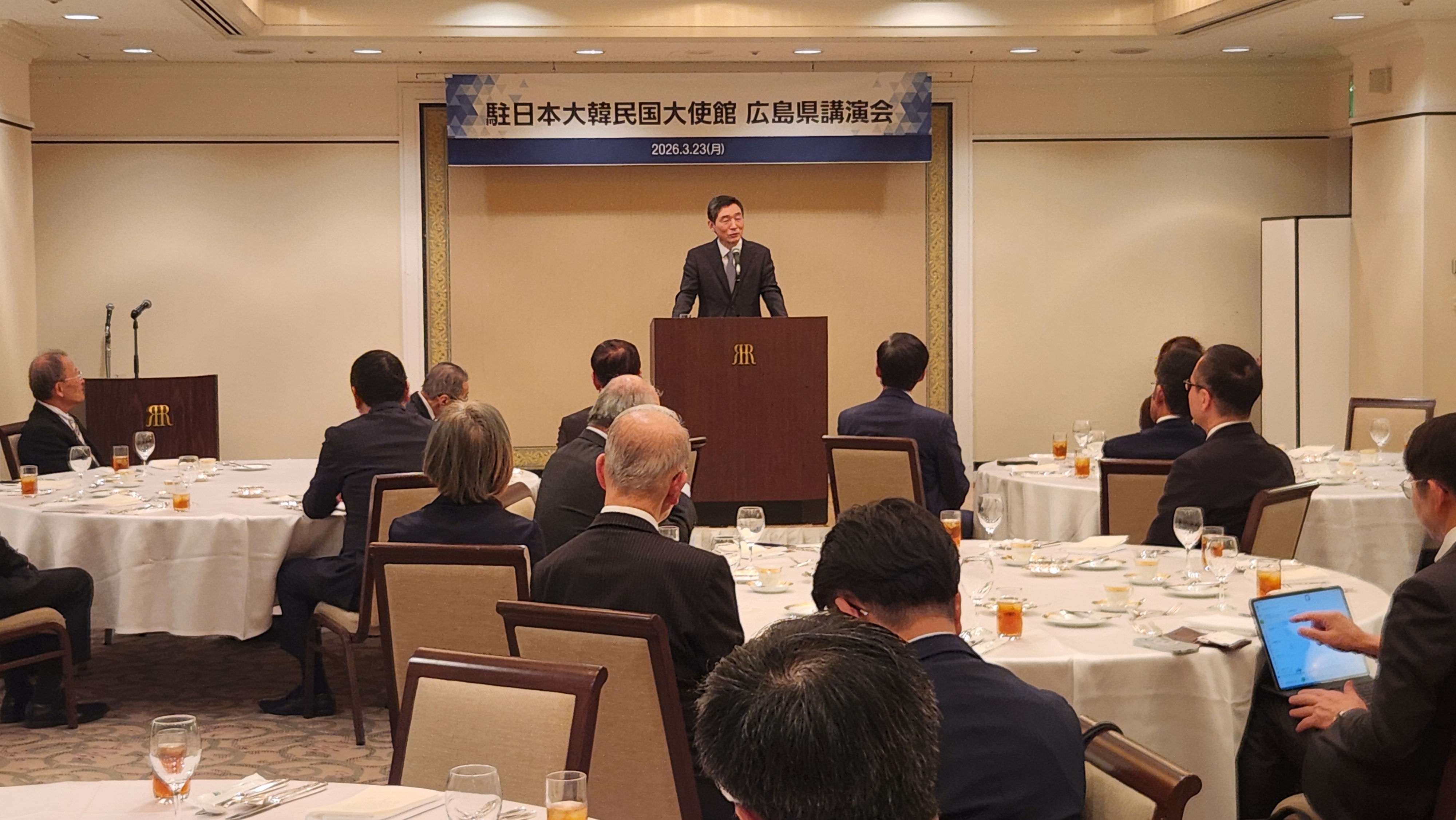 ㅇ 이혁 주일대사는 2026.3.23.(월)~25.(수)간 히로시마현과 야마구치현을 방문하여, ▲지자체 주요인사 면담, ▲히로시마 한국인 원폭 희생자 위령비 헌화, ▲히로시마 및 야마구치 일한친선협회 강연회 등을 실시했습니다.