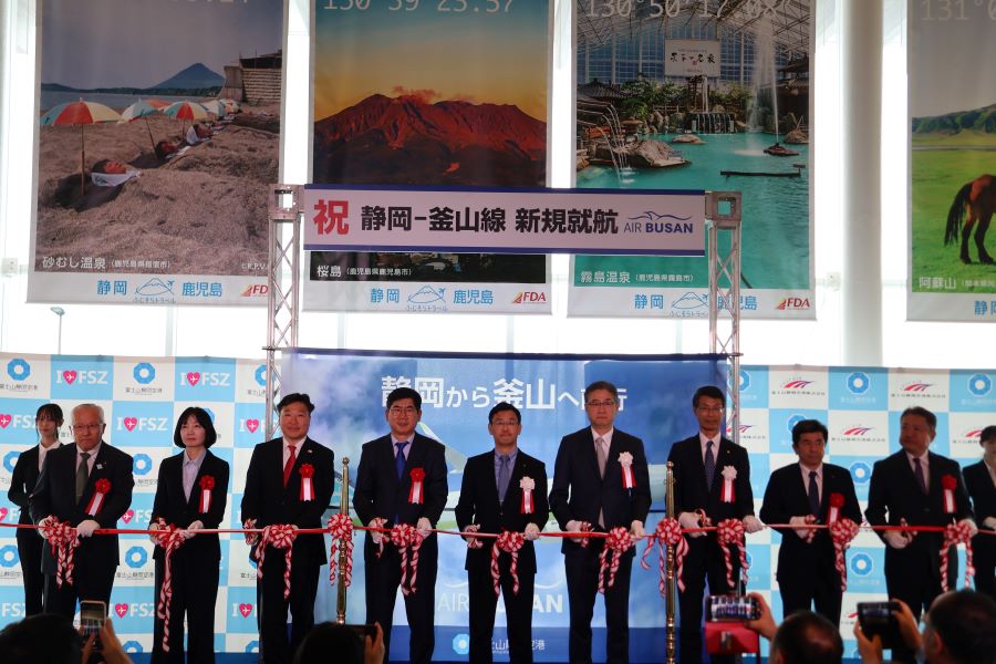 동 기념식에는 히라키 쇼 시즈오카현 부지사신바 아키라 시즈오카공항 사장기시다 히로유키 시즈오카공항 이용촉진협의회 회장 등을 비롯하여 국내외 관계자 및 언론인 약 30여 명이 참석한 가운데 테이프 커팅식이 진행되었습니다.